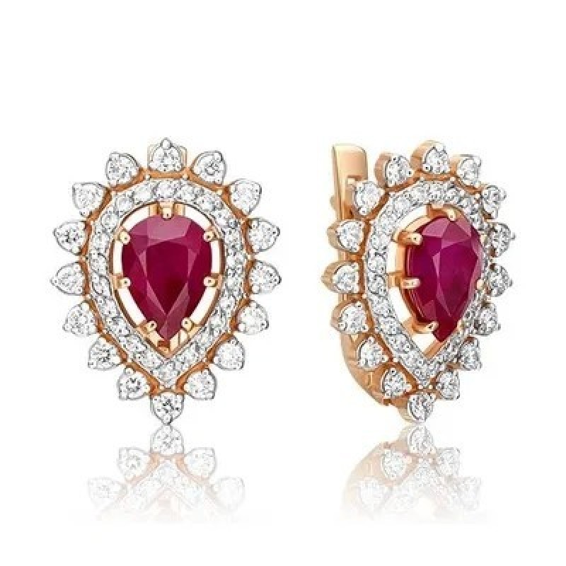 PLATINA Серьги с английским замком из красного золота 585 пробы c рубином и бриллиантами ₽220000.0 |